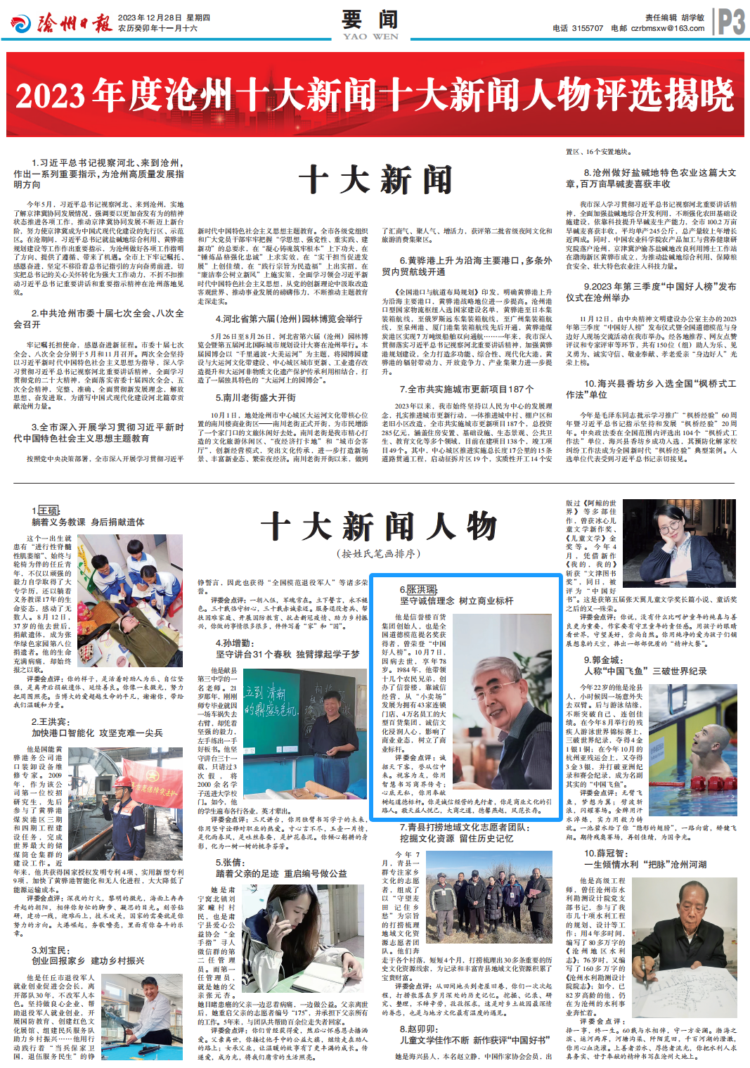 日前,由沧州日报组织的2023年度沧州十大新闻、十大新闻人物评选揭晓,信誉楼百货集团创始人、老董事长张洪瑞先生当选2023年度沧州十大新闻人物。